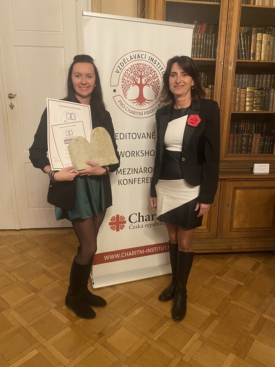 Na slavnostní konferenci 12.11.2025 v Olomouci převzala za naši organizaci Mgr. Miroslava Škávová certifikát etického systému DEKACERT® od prof. Dr. Elisabeth Jünemann. Certifikát je potvrzením úspěšného naplňování etického systému managementu kvality podle biblického desatera a oceněním dobré práce všech vedoucích a pracovníků. Děkujeme.