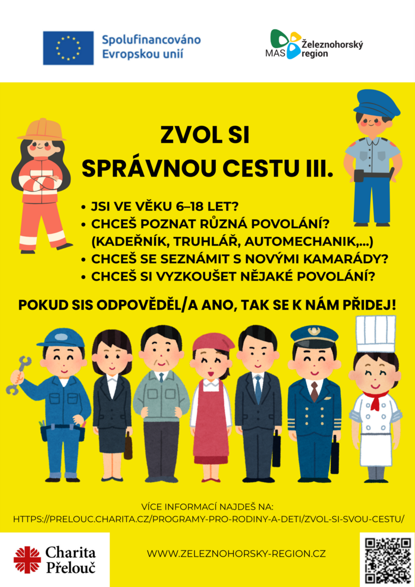 Od září pokračujeme v projektu Podpora rodičů a dětí v nepříznivé sociální situaci na území Železnohorského regionu. Dětem představíme řadu povolání, která by je mohla inspirovat k budoucímu profesnímu směřování. Kromě toho se zaměříme na rozvoj vrstevnických vztahů, spolupráce, finanční gramotnosti a na podporu správných vzorců chování. Aktivit se zúčastňují děti ze všech našich služeb, v případě zájmu i další děti. Projekt končí v červnu 2026.
